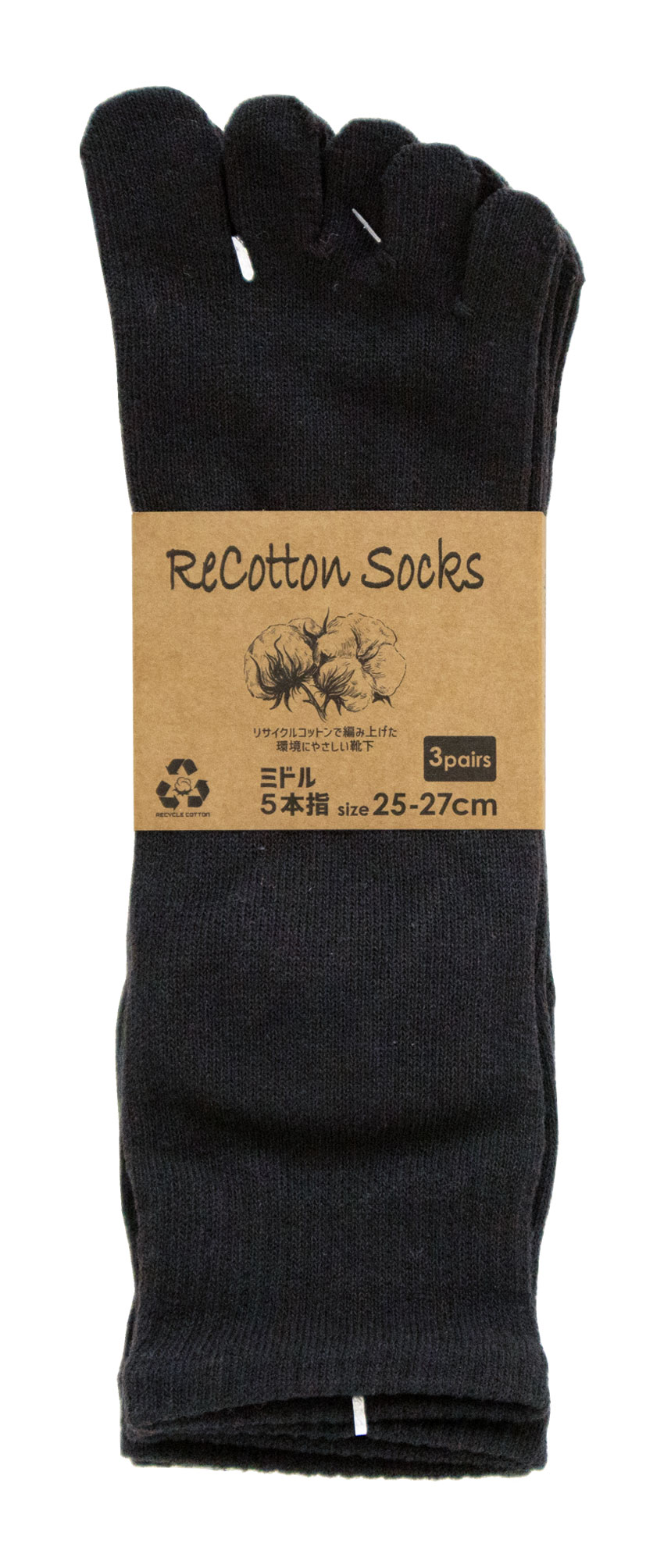 リサイクルコットン ミドル5本指 3足組 25-27cm
